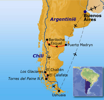 Deze reis neemt je in 18 dagen mee langs de hoogtepunten van het magische Patagonië, van uitgestrekte vlaktes tot hikingparadijs Los Glaciares Nationaal Park bij El Chaltén. Maak kennis met de indrukwekkende rotsformaties in het adembenemende Torres del Paine Nationaal Park. Hier kun je wandelen door brede valleien, grillige jonge gebergten en kraakheldere gletsjermeren. Het Los Glaciares Nationaal Park bestaat zelfs uit vijftig gletsjers die samen het Zuid Patagonische IJsveld vormen. De machtige granieten pieken van Cerro Torre en Fitzroy torenen hier statig boven het landschap uit. Naast het spectaculaire natuurschoon is er een grote diversiteit aan wildleven vindbaar in het gevarieerde landschap van Patagonië. Het meest typerende dier is misschien wel de guanaco, het wilde familielid van de lama en de karakteristieke inwoner van de Argentijnse hoogvlakten. Reizen door Patagonië is een onvergetelijke ervaring die niet snel van je netvlies zal verdwijnen!